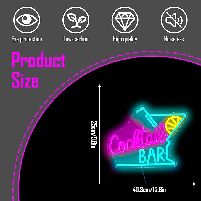 - PERFECT DECORATION:Cocktail LED Neon Signs can decorate your personal style and create a unique atmosphere.Adding neon cocktail lights can make any dull space vivid,which is an indispensable party and bar decoration.Can bring a good atmosphere to your family bar.It can also be used as an ideal choice for birthdays and other holidays