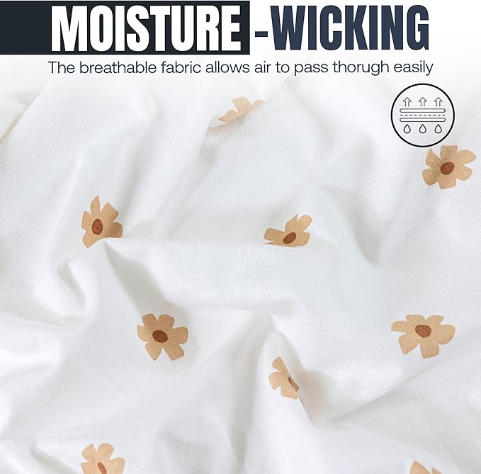 Mini Crib Fitted Sheet, 100% Cotton Knitted Jersey, Pack n Play Sheet, Breathable, Fitted Crib Sheets, Super Soft, Toddler Fitted Sheet,2 Pack,Brown/Flowers, 38x24x6