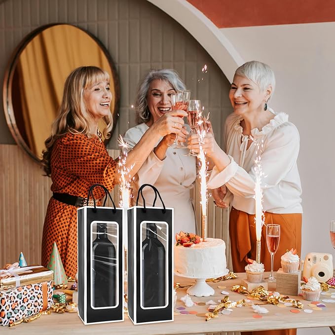 • 2.Wine Bag Set:You will receive 20 pieces of wine gift bags with window and handle,the quantity can meet your daily requirements for holding wine bottles, and you can share them with your guests at parties.