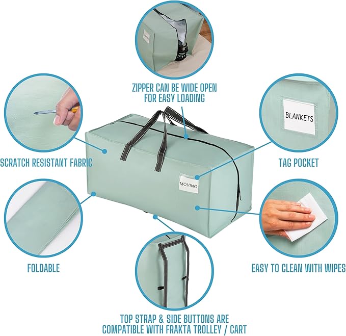 - Clear Tag Pocket & Wide Opening – Say goodbye to the frustration of searching for your belongings. Make a custom label and insert it into the clear tag pocket for easy identification of items like blankets, bedding, pillows, and clothes. Remember to use this labeling feature for organizing college dorm room essentials, moving to a new home, or storing items in the garage. The bag is equipped with dual extended zippers, creating a wide opening that allows for effortless access to stored items.