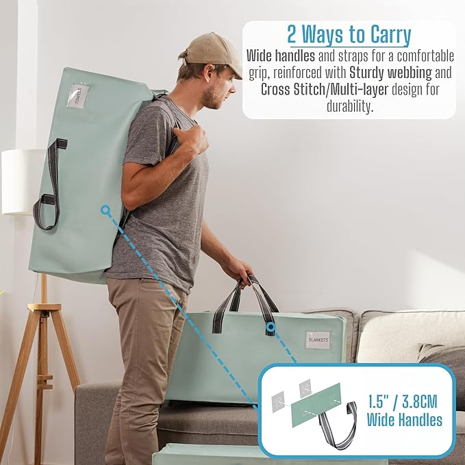 - Clear Tag Pocket & Wide Opening – Say goodbye to the frustration of searching for your belongings. Make a custom label and insert it into the clear tag pocket for easy identification of items like blankets, bedding, pillows, and clothes. Remember to use this labeling feature for organizing college dorm room essentials, moving to a new home, or storing items in the garage. The bag is equipped with dual extended zippers, creating a wide opening that allows for effortless access to stored items.