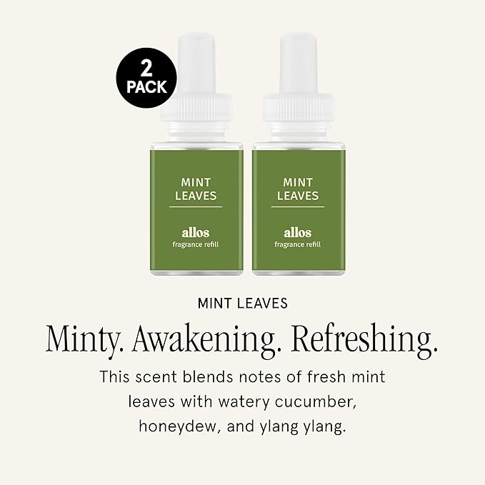 Pura and Allos - Fragrance Refill for Smart Home Air Diffusers - Aromatherapy Scents for Home - up to 120-Hours of Premium Fragrance per Vial - 2 Pack - Mint Leaves (Focus)
