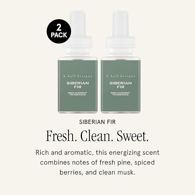 Pura & K. Hall Designs Home Scent Refill - Smart Home Air Diffuser - Up to 120-Hours of Premium Fragrance per Refill - Household Essential - Clean Diffuser Fragrance - 2 Pack, Siberian Fir