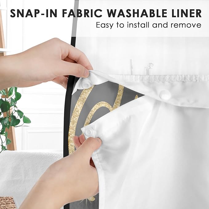 - [ Hotel & SPA ]:This no hook shower curtain is hassle-free due to detachable liner and built-in grommets, no need to remove shower rod, easy hang, self hanging shower curtains save time & money.