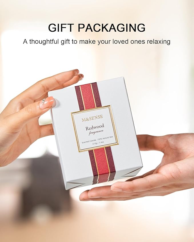 M&SENSE Redwood Scented Candles Soy Wax Natural Candle for Home, 7.4oz 40 Hour Long Burning Luxury Air Freshening Jar Candle Gift, Aromatherapy Candle for Relaxation, Meditation, Stress Relief