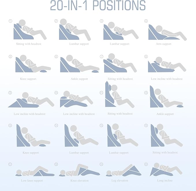 Bed Wedge Pillow for Sleeping, 20-in-1 Adjustable Pillow Wedge Acid Reflux Pillow, 9 &12 & 20 Inch 3-in-1 Incline Wedge Pillow for Back Pain Relief, Gerd, Snoring
