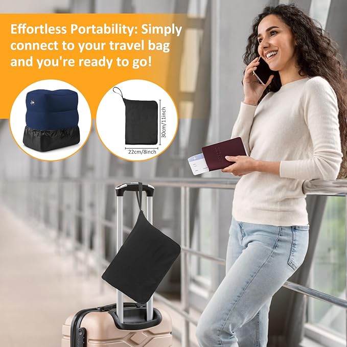 - Adjustable Height - Our footrest can be adjusted to three different heights at will, Inflate only the lower chamber for 1-level height, only the upper chamber for 2-level height, or both chambers for full height; Physical pain is something we can't stand. Studies have shown that using a travel foot rest pillow helps blood circulation, helps reduce the risk of DVT (deep vein thrombosis), and relieves back pain caused by sitting for long periods of time.
