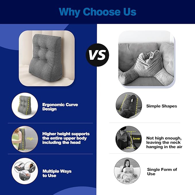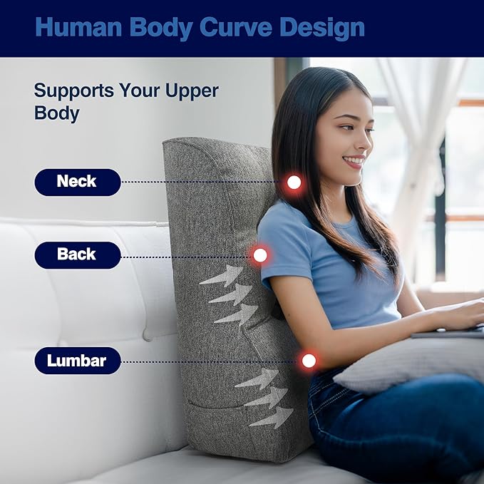 - Newly Upgraded Design Bed Wedge Pillow: This Reading Pillows for Sitting in Bed has been designed and rigorous testing to better suit your needs and ensure a perfect fit for the curve of your back. This provides maximum comfort for your back and waist, enabling you to read, watch TV, or work on your laptop more comfortably in bed.