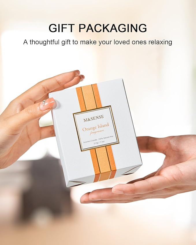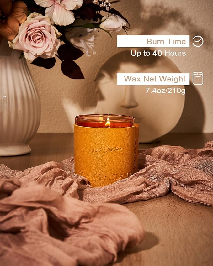 M&SENSE Soy Candles for Home Scented, Orange Island Scented 7.4oz 40 Hours Long Lasting, Natural Aromatic Jar Candle for Spa Bathroom Bedroom, Leather Wrapped Luxury Candle Gifts for Men & Women