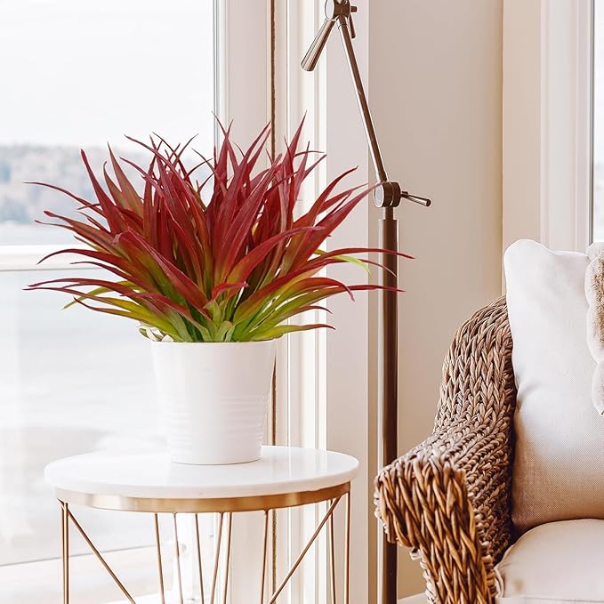 32Pcs Artificial Grass Fake Plants 17.3in Outdoor Plants UV Resistant Greenery Stems Fake Grass for Home Window Garden Office Patio Pathway Front Porch Décor Light Green & Red
