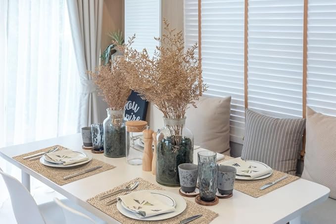 - [Elegant Natural] Classy placemats are made of premium cotton and linen blend, which gives a nice and warm feeling, and stay beautiful over the years