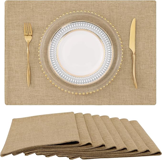 homing Flaxen Cloth Placemats Set of 8 – Cotton Linen Blend Washable Dining Table Mats for Indoors & Outdoors, Easy to Clean, 13 x 19 Inch