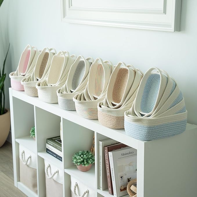 - Beautiful Color Variations: Your style is one of a kind, just like you, which is why these woven mini baskets for storage come in 7 exciting colors including full white, honey & white, grey & white, brown & white, stitches rainbow, blue & white and pink.