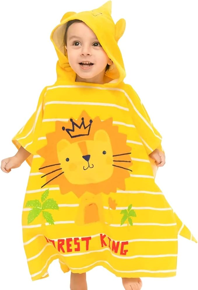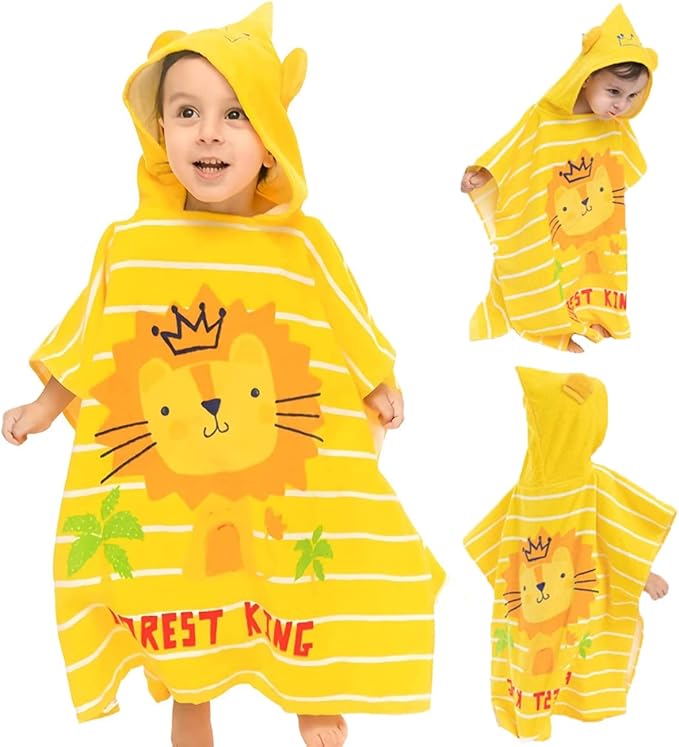 - Cute Animal Pattern: Cartoon dinosaur/lion elements of the kid poncho towel brings kids closer to the fairy world, wearing this cute bath poncho is adorable and full of childlike joy.