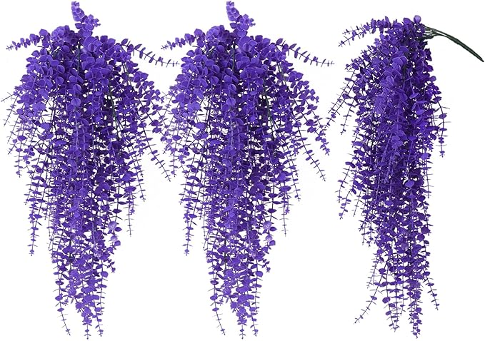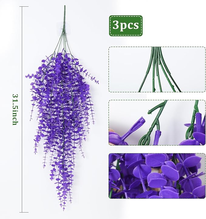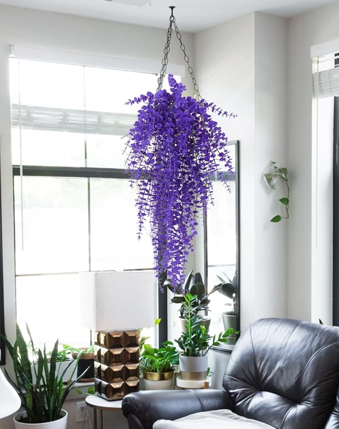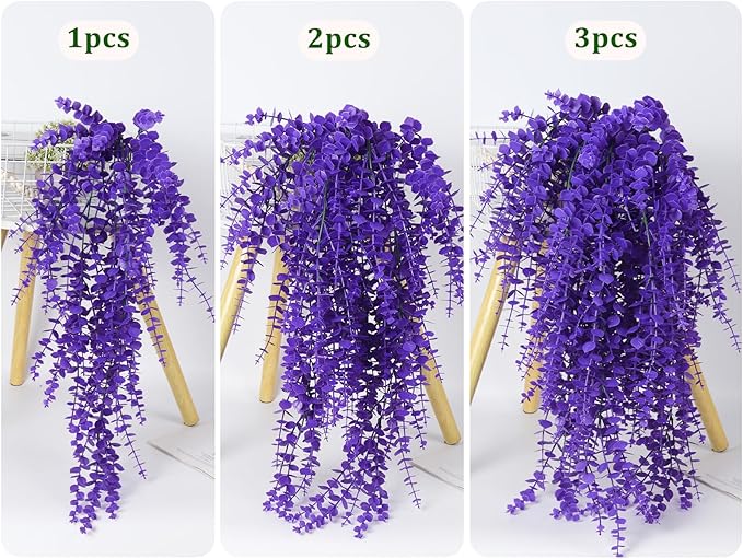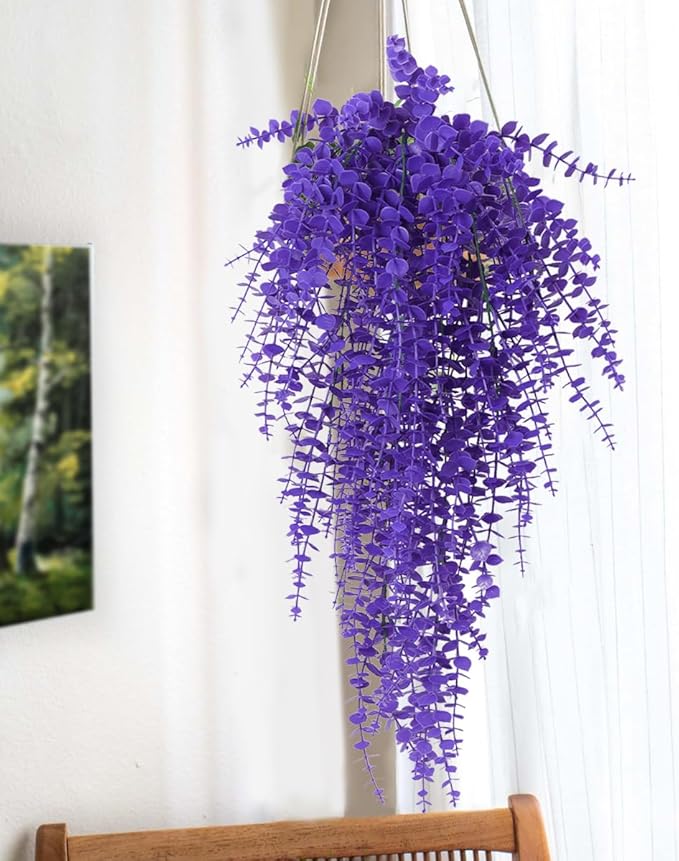 RECUTMS Artificial Hanging Plants Fake Plants Greenery Vines Aritificial Plants Eucalyptus Purple Leaves Hanging Vines Plant Colorful Outdoor Faux Vines Wall Decoration(Pure Purple)