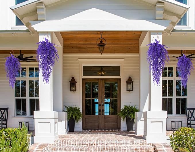 - 【UV Resistant Plastic Plants】Artificial fake hanging plants for outdoor are UV resistant, more realistic, natural vibrant color,no need to worry about watering, pruning,Fake hanging plants can be washed by water and can be put anywhere the hot or cold weather.