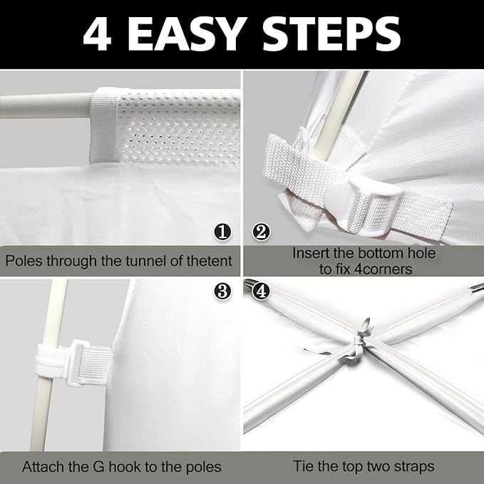 - Easy to Set Up: 2 fiberglass poles through the tunnel of the tent, insert the bottom hole to fix 4 corners, easy to set up in minutes. Size is 75"x39"x51" H, please measure your bed size before purchasing the bed tent.