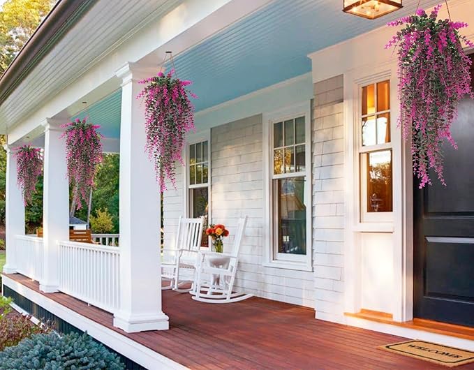 - 【UV Resistant Plastic Plants】Artificial fake hanging plants for outdoor are UV resistant, more realistic, natural vibrant color,no need to worry about watering, pruning,Fake hanging plants can be washed by water and can be put anywhere the hot or cold weather.