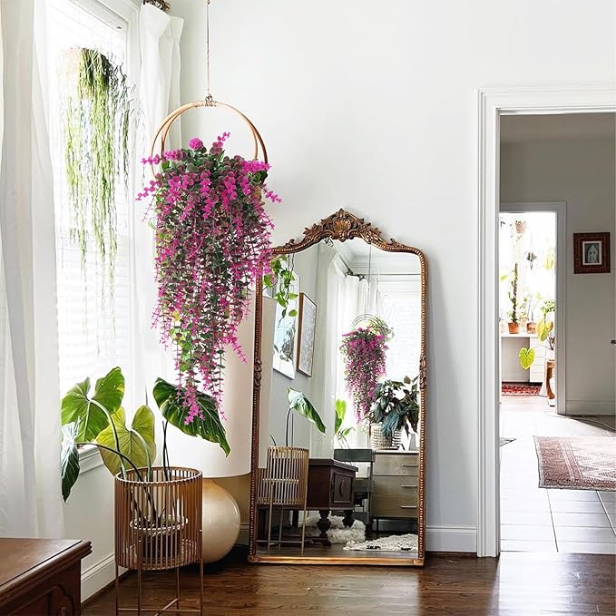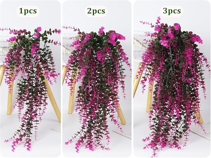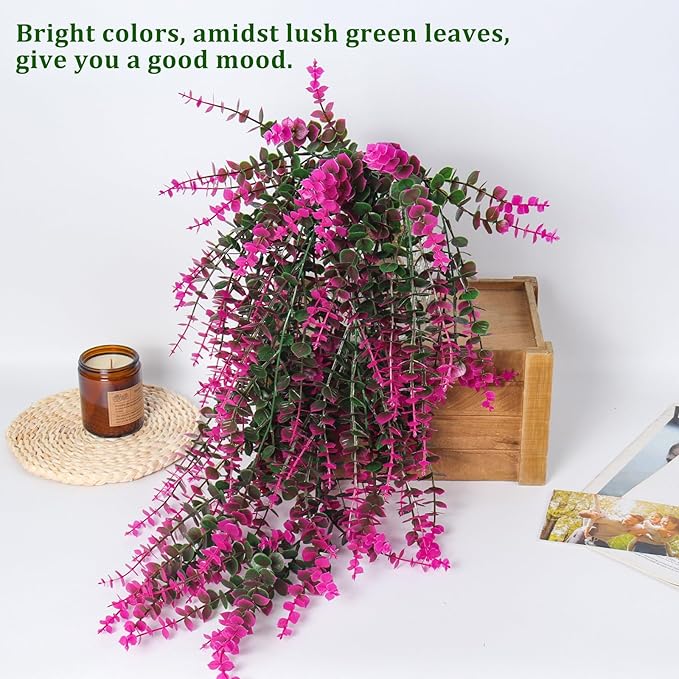 Fake Monkey Plants Hanging Eucalyptus Vines Fake Vines Faux Hanging Plants for Outdoor Garden Yard Backdrop Decor Indoor Room Table Wall Home Hanging Decoration(Fuchsia)