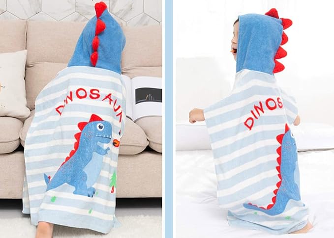 - Cute Animal Pattern: Cartoon dinosaur/lion elements of the kid poncho towel brings kids closer to the fairy world, wearing this cute bath poncho is adorable and full of childlike joy.