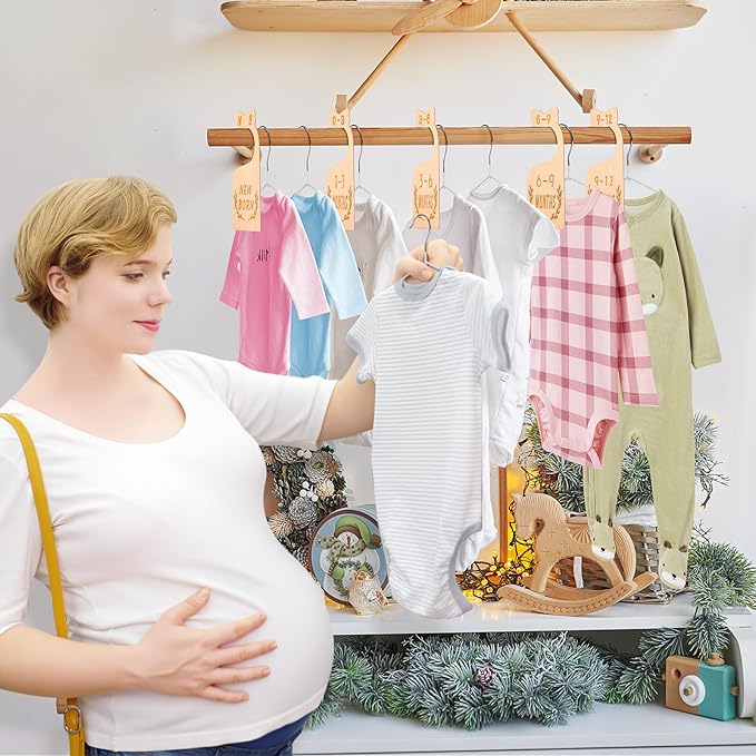 8Pcs Wooden Baby Closet Dividers for Baby Clothes Organizer, and 30Pcs Baby Hangers, Baby Closet Organizer Baby Clothes Dividers for New Mom Dad Parents, 0-24 Months