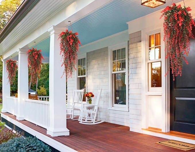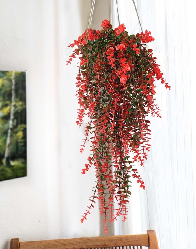 - 【UV Resistant Plastic Plants】Artificial fake hanging plants for outdoor are UV resistant, more realistic, natural vibrant color,no need to worry about watering, pruning,Fake hanging plants can be washed by water and can be put anywhere the hot or cold weather.