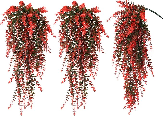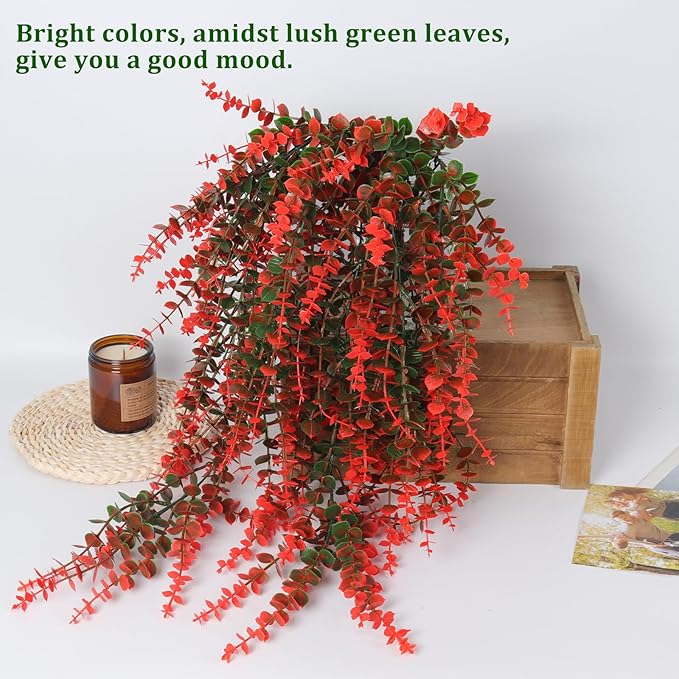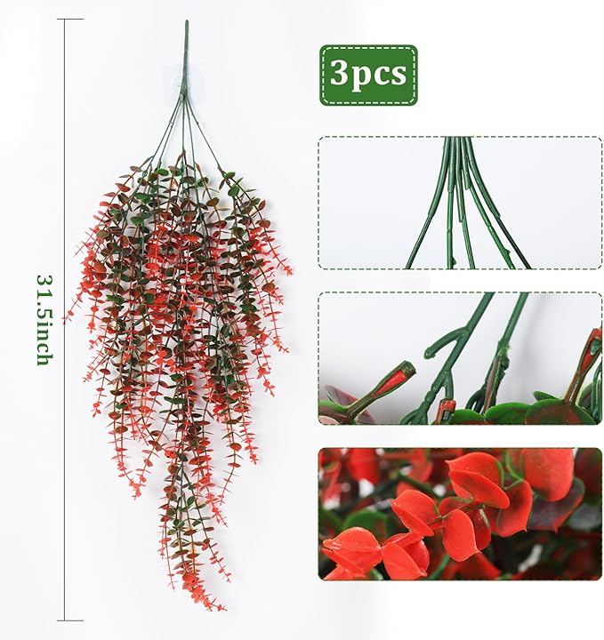 RECUTMS Artificial Monkey Hanging Plant Fake Artificial Eucalyptus Leaf Plants Faux UV Resistant Artificial Plants for Indoor Wall Room Decoration Home Backgarden Yard Porch Outdoor Decor(Orange)