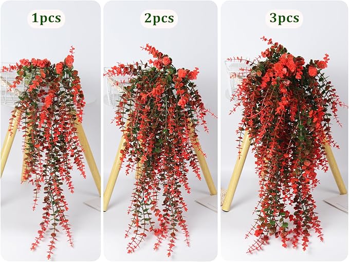 - 【Hanging Plants Artificial Decor】Fake hanging plants vine are suitable for outdoor indoor wedding party festivals.Artificial vine plant can be hung in the living room, corridors, porches, cafes, stairs, outdoor garden house decoration.