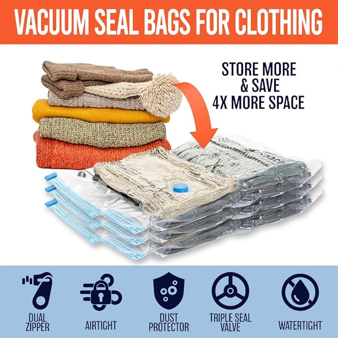 - MAXIMIZE YOUR SPACE - Our ClearSpace Vacuum Storage Bags are the perfect solution for creating more room in your home. Whether it's clothing, blankets, or other items, these vacuum seal bags can compress and save up to 80% space, making them essential for travel and home organization.