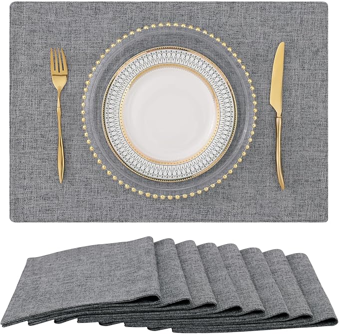 homing Dark Grey Cloth Placemats for Dining Table Set of 8 – Cotton Linen Blend Washable Farmhouse Kitchen Mats for Indoors & Outdoors - Easy to Clean 13 x 19 Inch