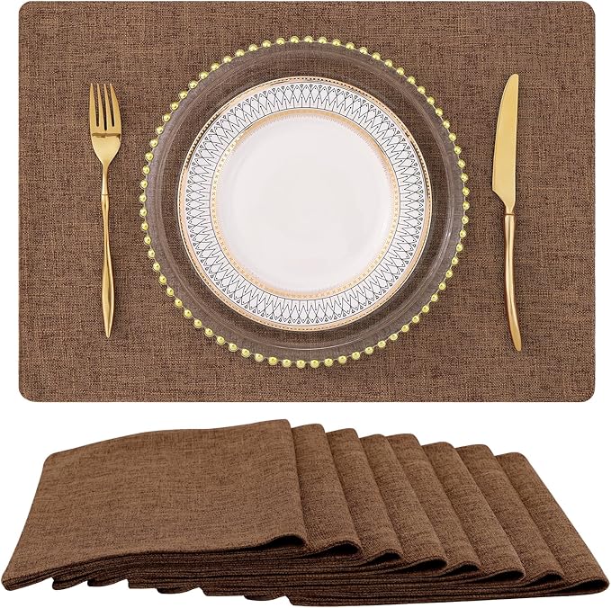 homing Brown Cloth Placemats Set of 8 – Cotton Linen Blend Washable Farmhouse Dining Table Mats for Indoors & Outdoors, Easy to Clean, 13 x 19 Inch