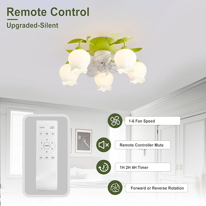 - Quatily Assurance: We’ve made setup a breeze! Every bladeless ceiling fan with light includes all necessary hardware and a detailed instruction manual; if you have any questions or problems before purchasing or after receiving the FLOWER CEILING FANS, please feel free to contact us! Our customer service will reply you within 24 hours;