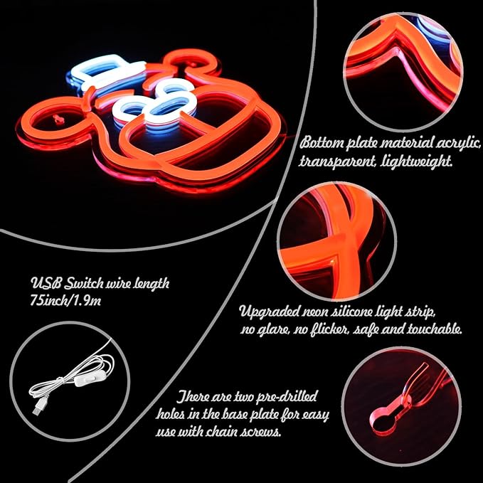 - Vibrant Neon Lighting: This cute Five Nights Bear neon sign emits a bright, eye-catching orange glow, perfect for decorating bedrooms, children's rooms, or special events.