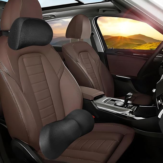 - [Moderate Density Slow-Rebound Memory Foam] - The car neck pillow & back support cushion is made of soft memory foam. It cushions and supports the body with moderate softness, and evenly absorbs the pressure from the neck, back and lumbar area, driver’s lumbar support pillow providing relax to who suffers driving fatigue.
