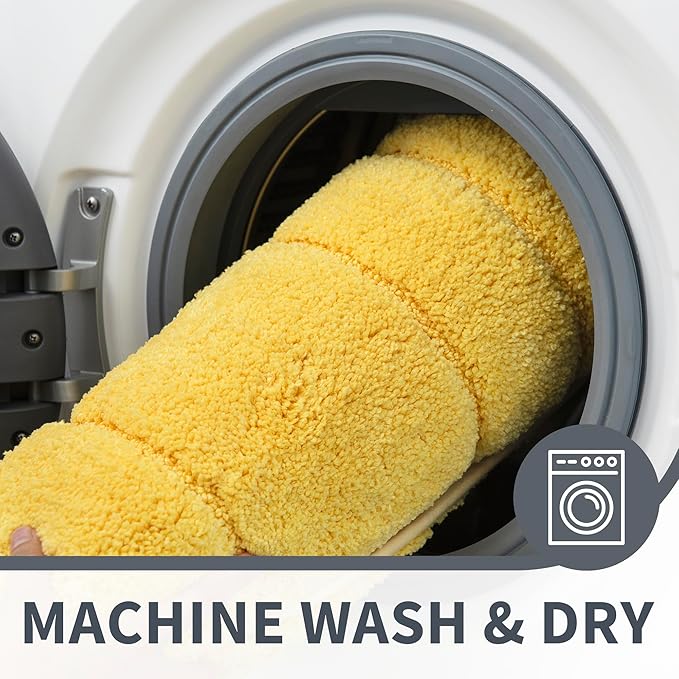 - Machine Washable - Machine wash the bathroom floor mat with cold water and mild detergent. Make sure the dryer is on low heat setting when tumble dry and keep away from chlorine and bleach. After professional testing, the color will remain vibrant after many washes.