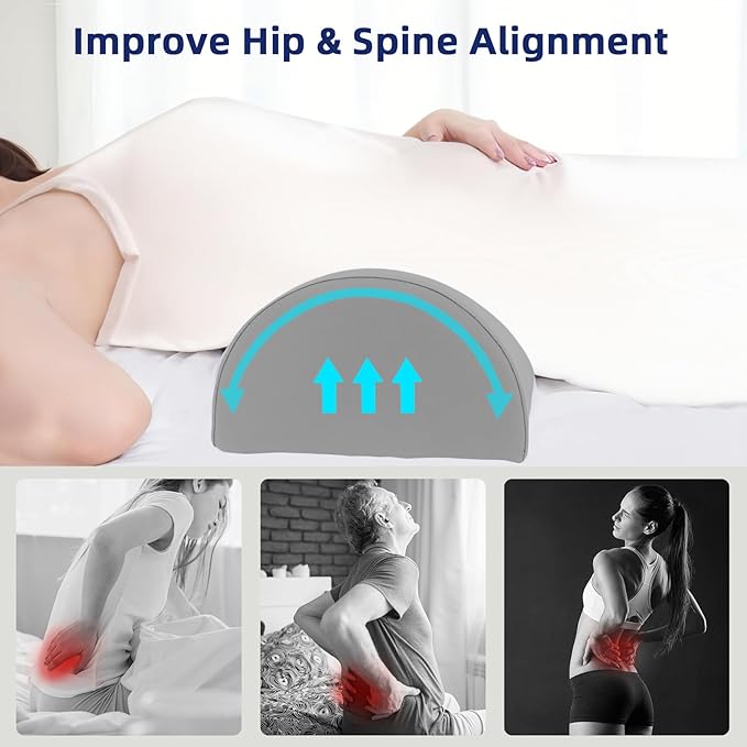 - 【 Half Moon Body Positioner Pillow】 Multi-prupose half moon pillow for back sleepers, side sleepers to provide hip pain, leg pain, and joint pain relief at night. It can be used as a comfortable lumbar support pillow for your office chair, and the the perfect armrest when lying or sitting on your couch.