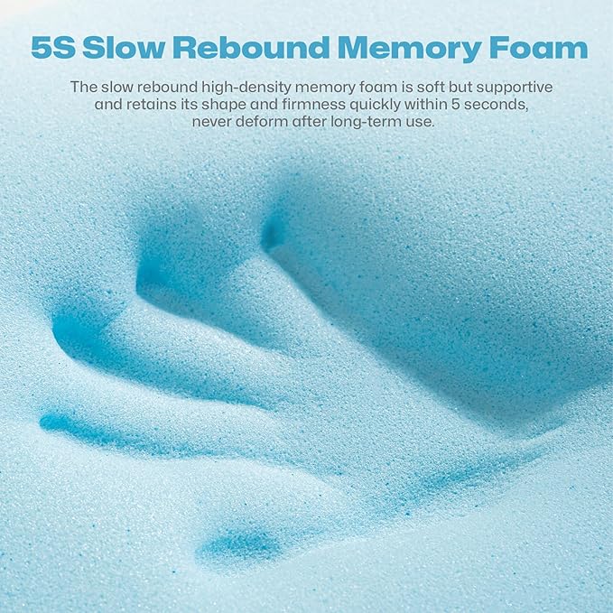 - 【Premium Memory Foam】: The top layer and the pad are crafted from high-quality 45D blue gel memory foam, ensuring cool and dry even with prolonged use. The bottom layer are filled with high-density foam, soft but supportive, never deform after long-term use.