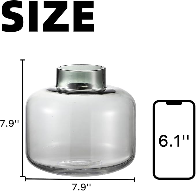 Round Glass Vase, Black Glass Vase, Wide Glass Vase, Large Glass Vase for Flowers, Large Flower Vase, 8 Inch Glass Flower Vase for Living Room, Dining Table, Wedding, Bookshelf, Office Decor