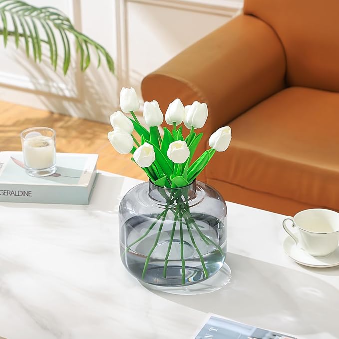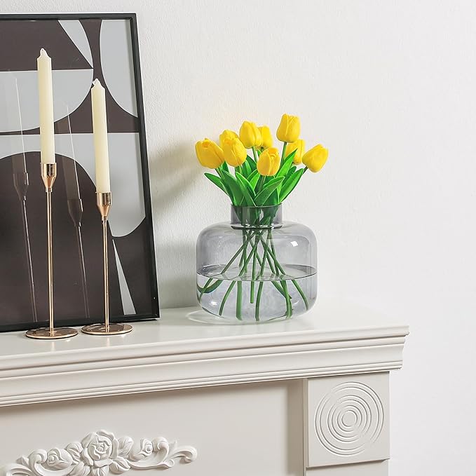 - ROUND GLASS VASE: PORPAN Round Glass Vase is perfect for displaying your flower bouquets and adding a touch of elegance and simplicity to your living room, dining room, entryway, mantle, shelf, coffee table, fireplace, and porch