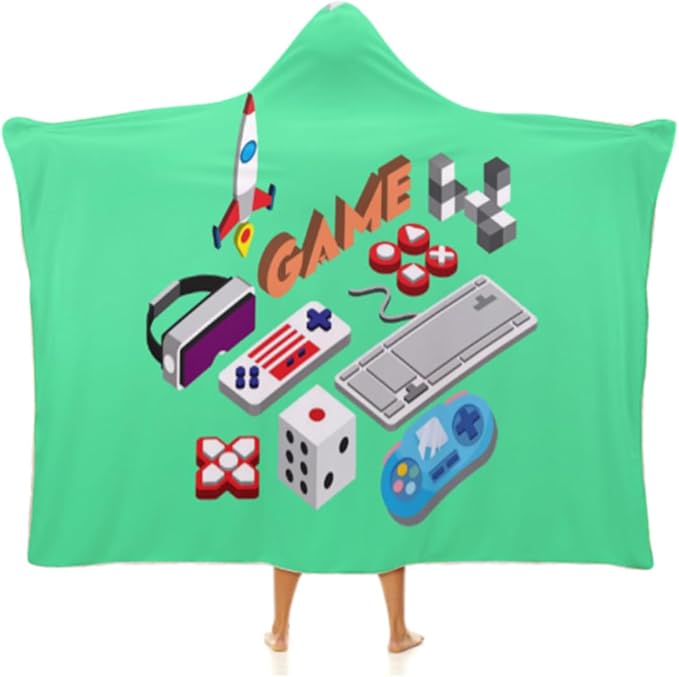 Kids Hooded Towels, Beach Bath Towel, Surf Poncho Toddlers Soft Thick Large Absorbent Cotton Wrap for Boy Girl, Shower/Beach/Pool 50"x30" (Game)