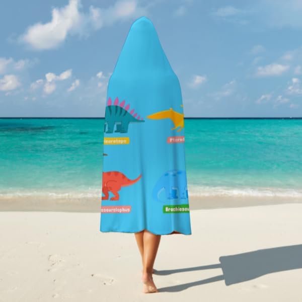 - This Hooded COTTON towel wraps adopts an environmentally friendly Printing, the cute Dinosaur make kids towel so gorgeous and be kids costume cape and attractive that can get children?s love at once! The bright green color Dinosaur unisex, absolutely lovely and make your littles stands out from bath beach or pool.