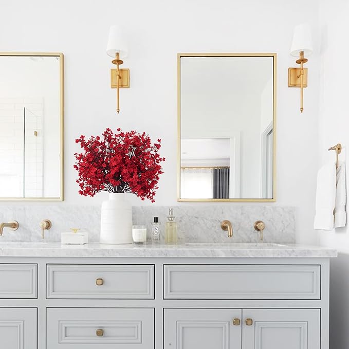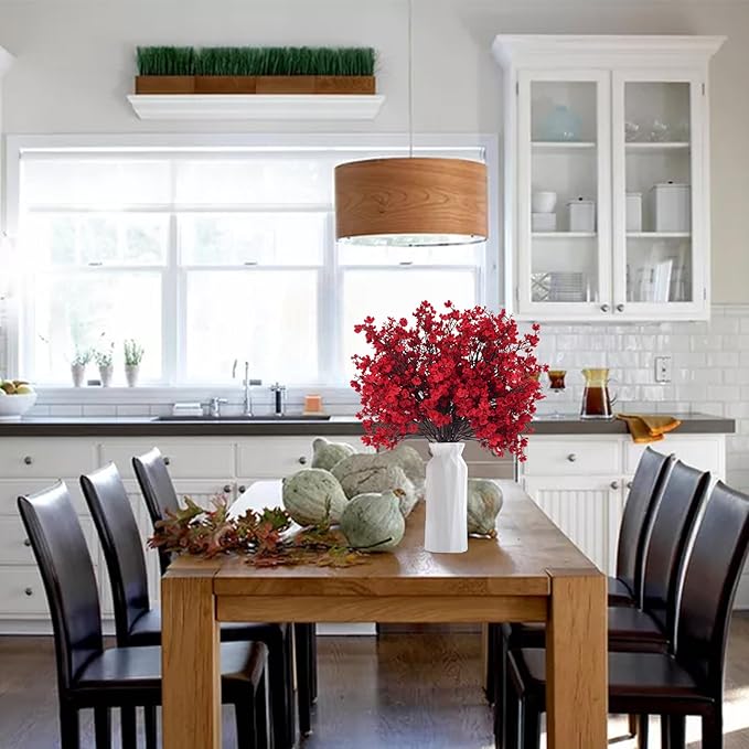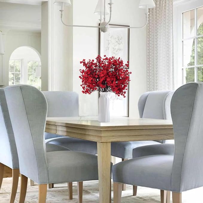 - Wide Application: Red flowers artificial for decoration-Decorate your favors, corsages and perfect for festival ornament, fireplaces, Valentine's day. UV resistant baby breath artificial flowers bush suitable for both indoor and outdoor use.