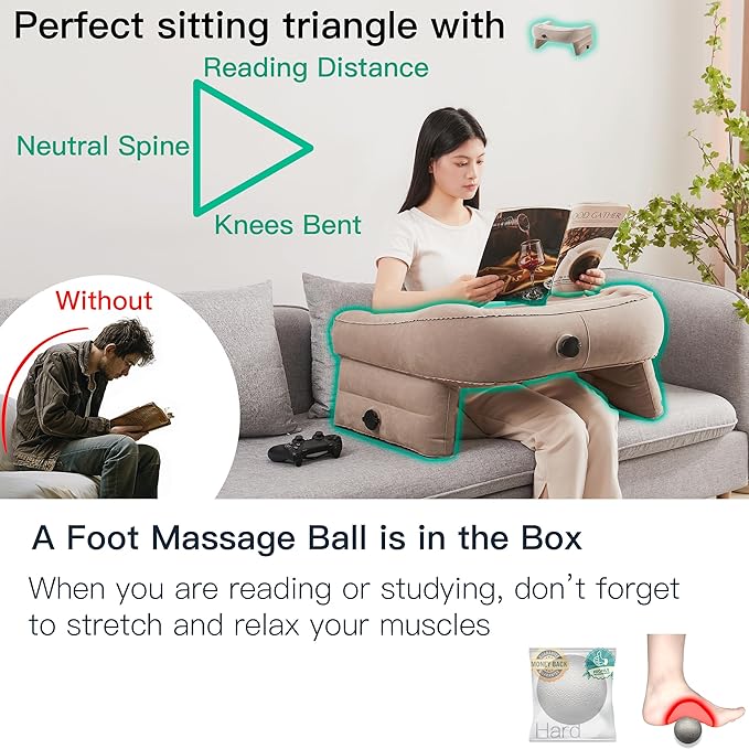 - 【Arms Rest+No hunching ffor Reading】Our ingeniously designed reading pillow features a plush armrest area that gently cradles your arms, eliminating shoulder strain and fatigue. Say goodbye to aching shoulders after long reading hours! The designed slope elevates your reading material, encouraging a natural straightening of your spine and putting an end to slouching. This thoughtful design promotes a healthy viewing distance, reducing eye strain and ensuring that every page-turning moment contributes to a perfectly aligned 'triangle sitting posture.' One simple solution, a world of difference for your daily reading ritual—comfort, posture, and visual health, all in one remarkable product!