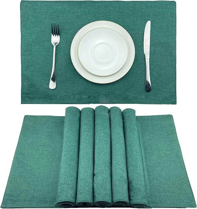 Weabetfu Cloth Placemats Set of 8 Heat Resistant Dining Table Placemmats Cotton Linen Machine Washable Kitchen Table Mats Wrinkle Free Thick Fabric Place Mat,Easy to Clean,13"x19" Green