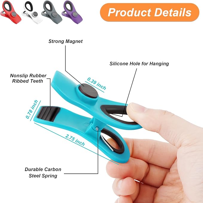 - Versatile Essential: Not just for sealing bags! These magnetic clips can hang notes, recipes, or photos on the fridge, organize small accessories in your workspace, and even serve as garden clips to secure plant ties, garden netting, or lightweight tools in your garden or greenhouse. A smart helper for everyday kitchen, home, and work life.