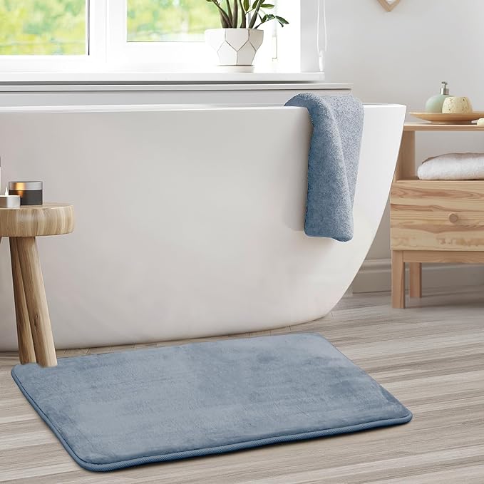 - SUPER QUALITY AND COMFORT; This super soft and ultra-comfortable bath rug feels super comfortable when your feet steps on it, made of super soft Velvet Fleece, filled with soft memory foam cushioning.