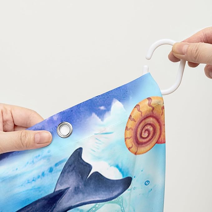 AILONEN Cute Cartoon Whale Shower Curtain,Kawaii Marine Animal Whale Bathroom Curtain for Kids Girls Boys,Blue Tie Dye Bath Curtain Set,Seaweed Fabric Shower Curtains for Bathroom, 36" W*72" H