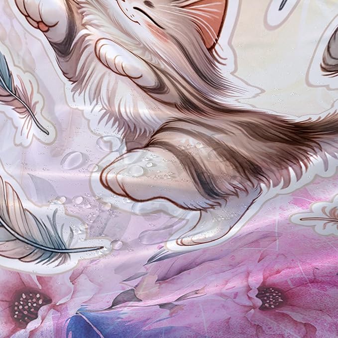 AILONEN Cartoon Cat Shower Curtain,Kawaii Dance Kitten and Feathers Bathroom Curtain Set for Kids Boys,Cute Animal Kittens Waterproof Shower Curtain for Bathroom, 36" W*72" H Pink