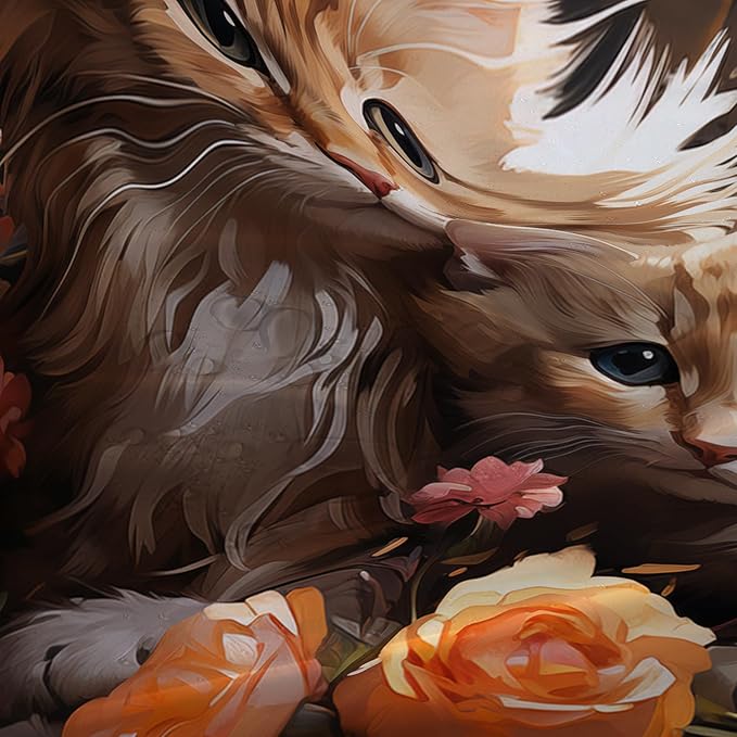 AILONEN 3D Kawaii Cat Shower Curtain,Lovely Kitten Mom and Son Polyester Cloth Bath Curtain Set for Girls Boys,Cute Animal with Flowers Waterproof Shower Curtains for Bathroom, 72" W*78" H