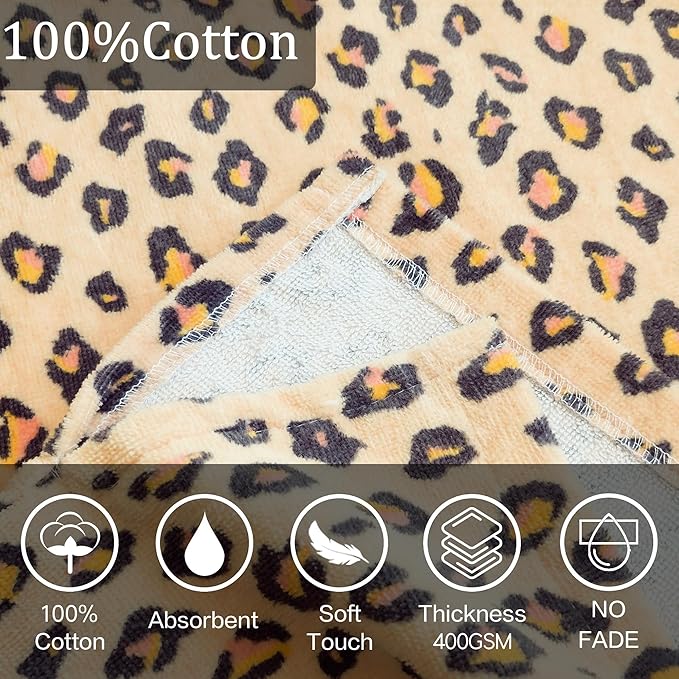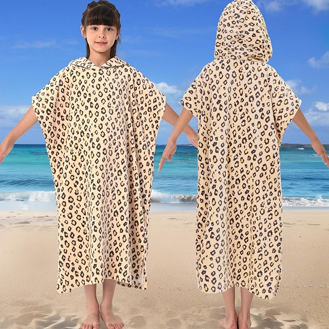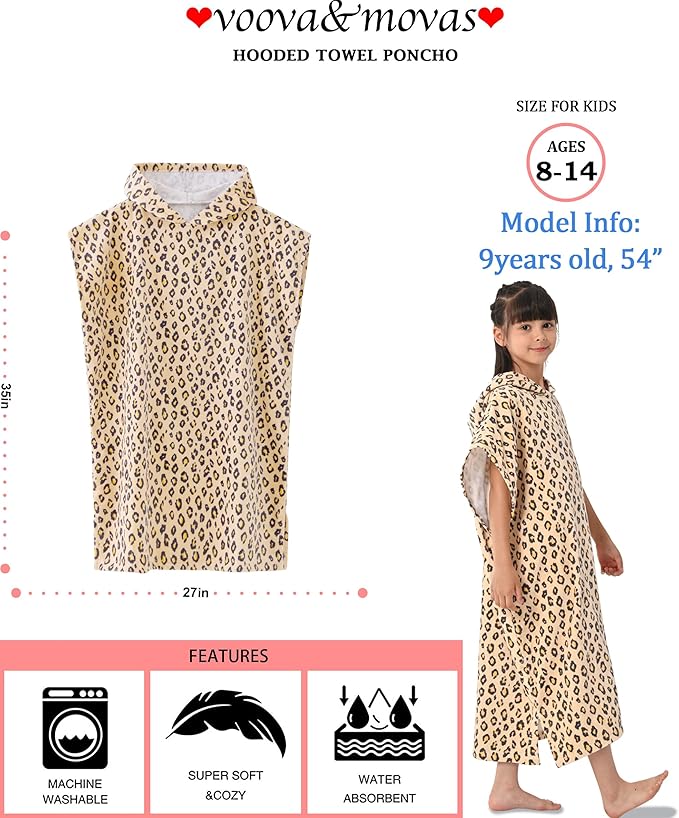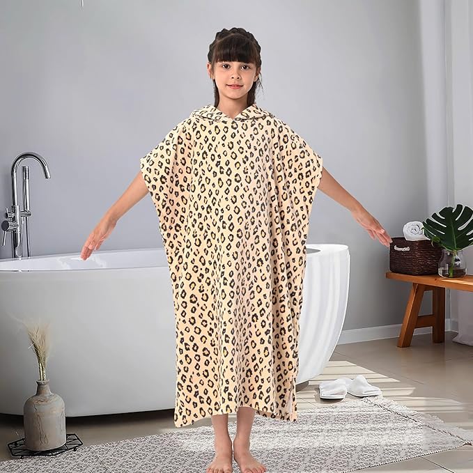 VOOVA & MOVAS Changing Towels Robe for 8-14 Girl Teens,100% Cotton Poncho Towel, Large Absorbent Hooded Towel Dress for Pool | Beach | Bath | Swim, Leopard Print